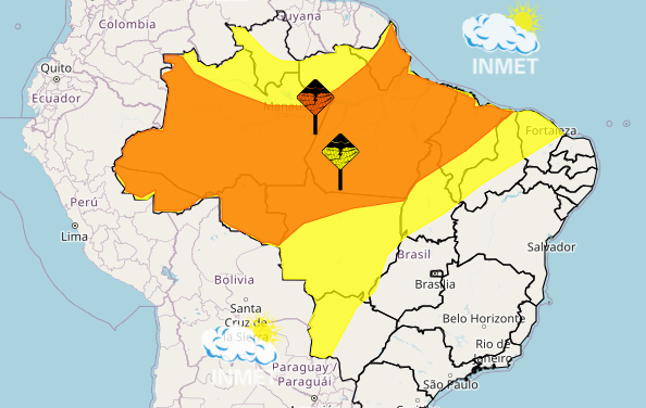 O alerta é classificado com grau de severidade de perigo potencial (amarelo), indicando baixo risco para ocorrências mais graves, mas com possibilidade de impactos localizados. Entre os transtornos previstos estão corte de energia elétrica, queda de galhos de árvores, alagamentos pontuais e eventuais danos em plantações.
