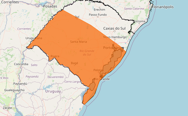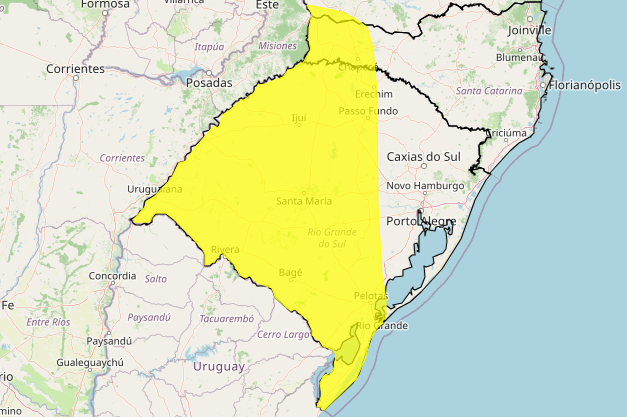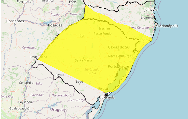 Rio Grande do Sul tem alerta de perigo para tempestade no final de semana