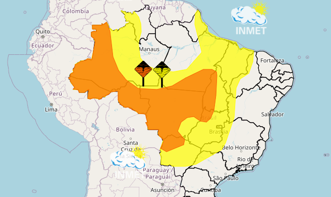 Inmet alerta para chuvas intensas entre leste do Amazonas e noroeste do Ceará