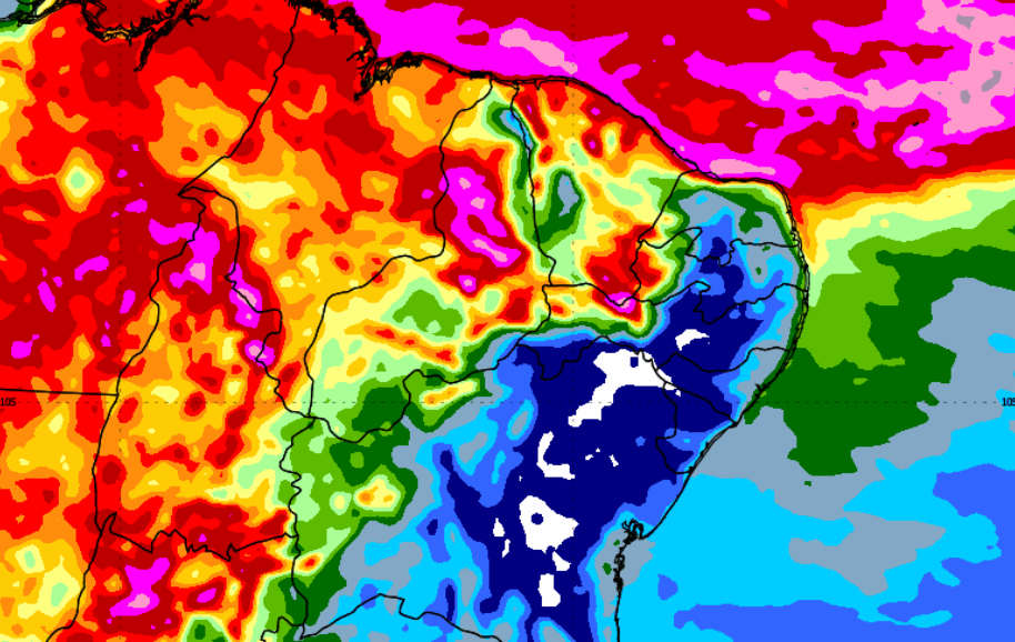 Chuvas concentram-se no Centro-Norte e favorecem lavouras, enquanto Sul registra menor volume e restrição à soja